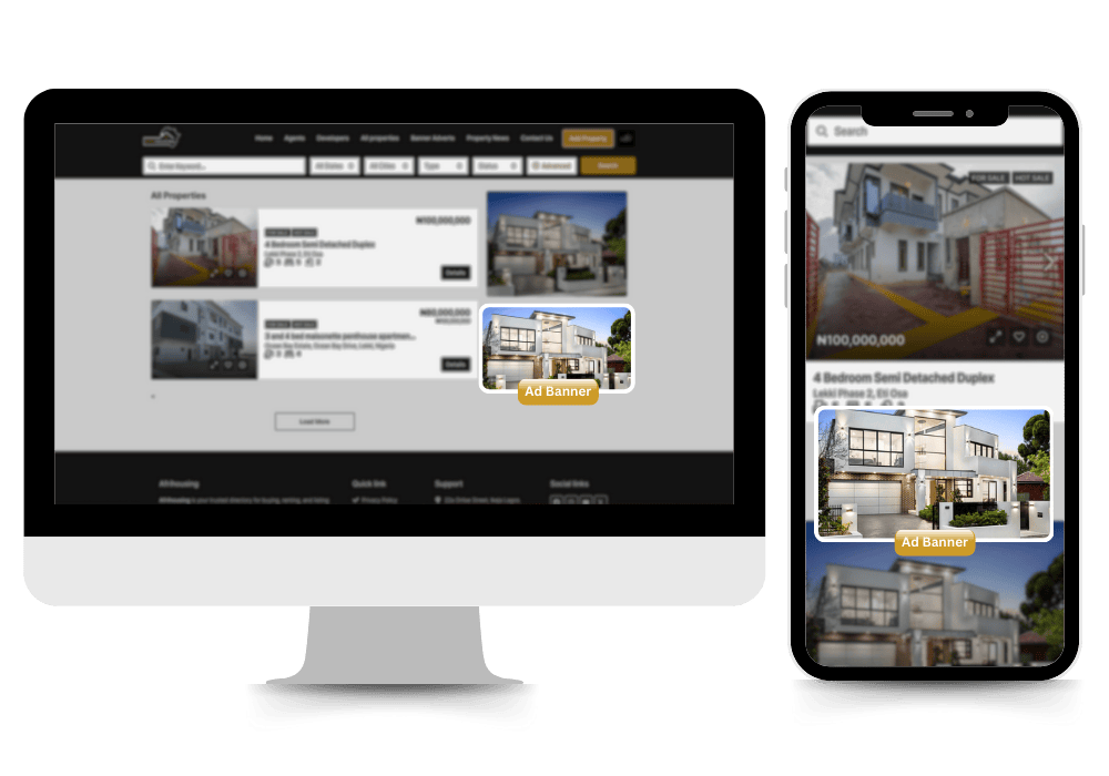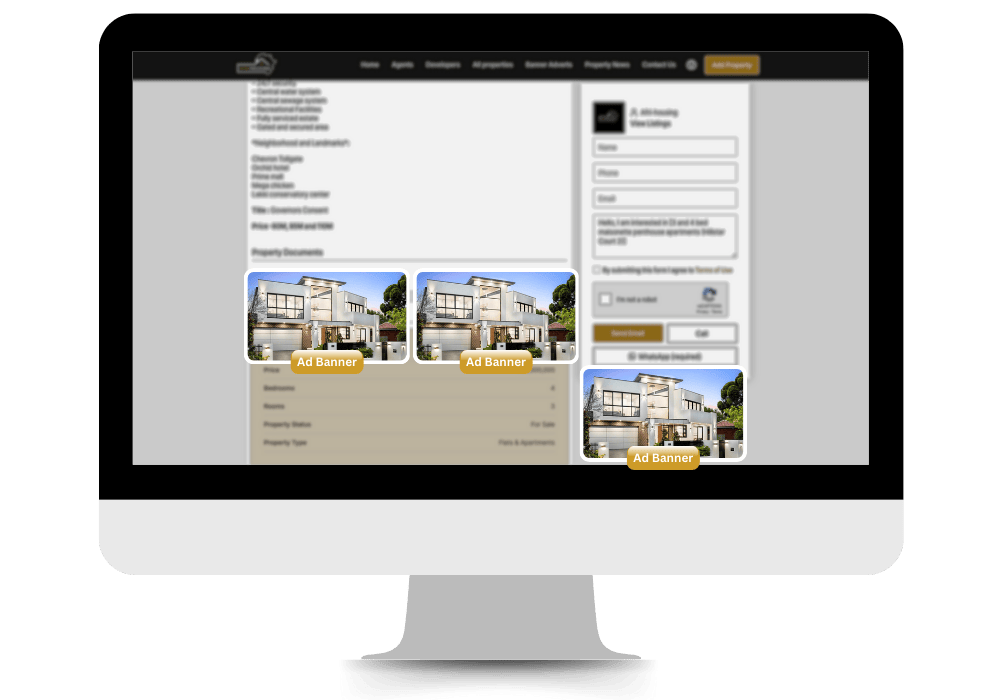 Your banner will be displayed on the sidebar of the ‘All Properties’ page on our website. This ensures that both new and returning visitors see your ad, increases the chances of clicks and conversions. Only 5 slots are available, with one banner per slot. The banner is also mobile-friendly..
